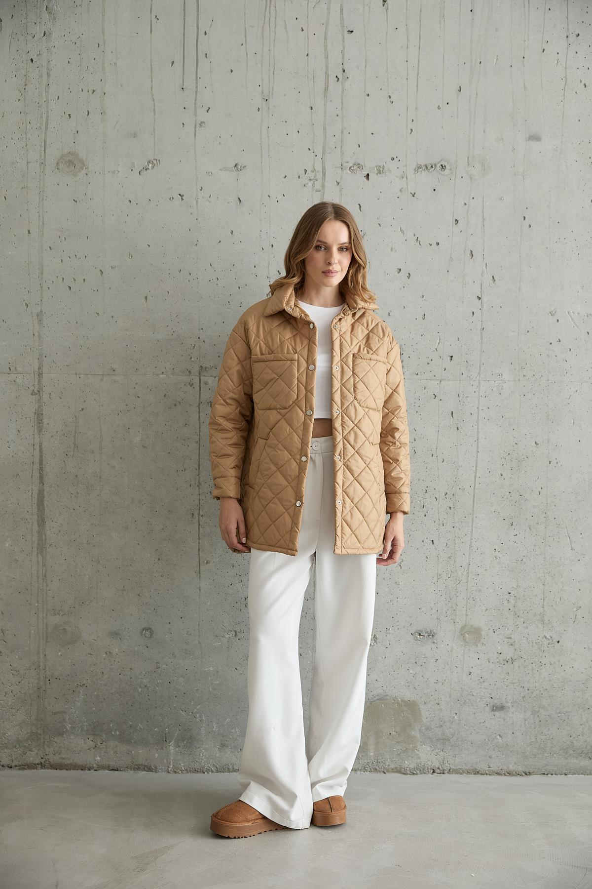 Kadın Kapitone Baklava Desenli Oversize Mont CAMEL (M28-5426-38)